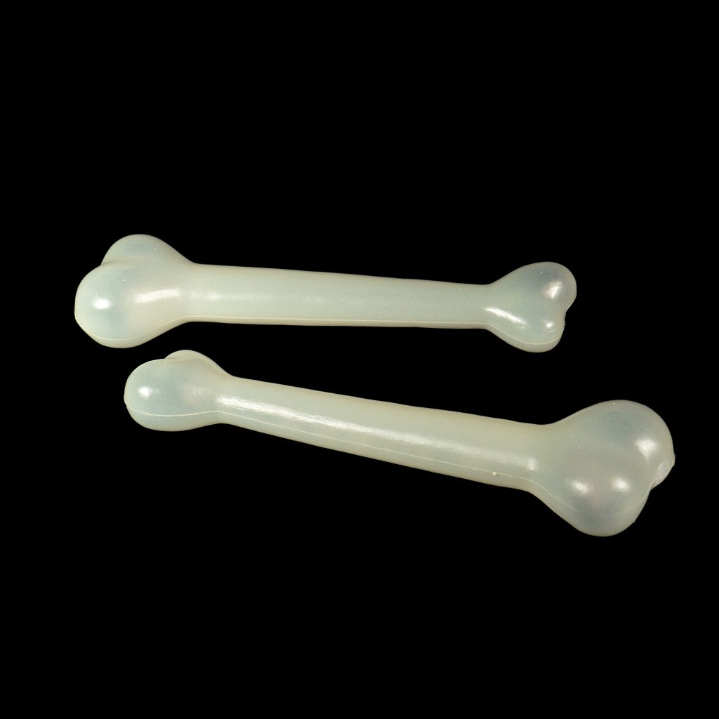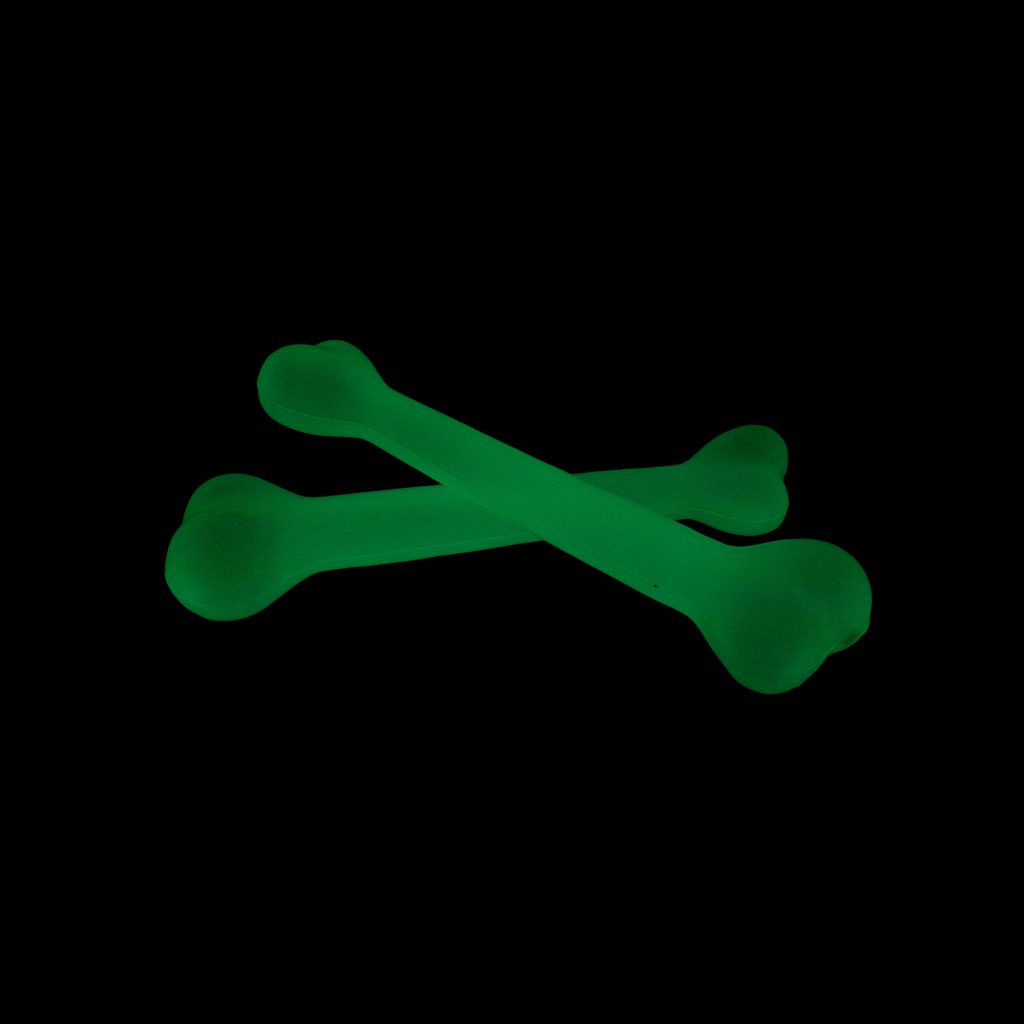• Leuchteffekt im Dunkeln: Nach dem Aufladen mit einer hellen Lichtquelle (z.B. LED-Taschenlampe) oder mit Schwarzlicht leuchten die Knochen für einige Minuten im Dunkeln.