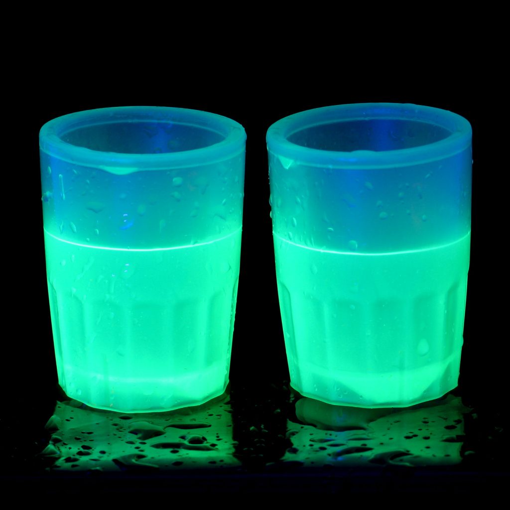 Knicklichter Shot-Becher sind doppelwandige Becher, die im Inneren Knicklichter-Leuchtflüssigkeit enthalten. Im Boden des Bechers befindet sich ein Glasröhrchen, das die beiden Flüssigkeiten voneinander trennt. Mit einem kräftigen Druck auf den Boden wird das Röhrchen zerbrochen – die Flüssigkeiten vermischen sich und der Becher beginnt zu leuchten.