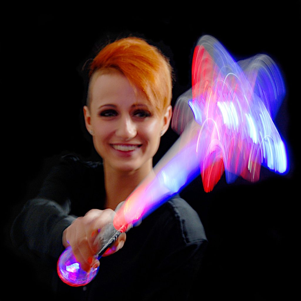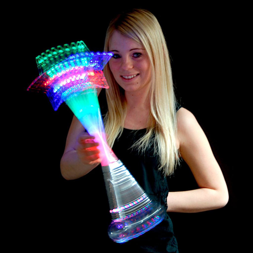 Der LED Prisma Stab mit Stern ist ein auffälliger Leuchtstab für Partys, Festivals und Veranstaltungen. Der transparente Sternkopf und der leuchtende Stab erzeugen bunte Lichtreflexe, die im Dunkeln besonders gut zur Geltung kommen.