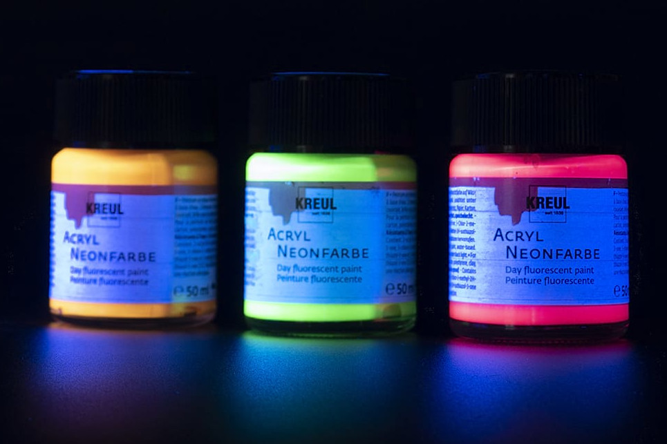 Die fluoreszierende Acryl Bastelfarben können zum Bemalen von vielen Untergründen eingesetzt werden: Holz, Papier, Karton, Styropor, Stein, durchgetrockneter Beton, Terrakotta, Glas, Keramik, Ton, Metall, Kunststoff, Leder, selbsthärtende Modelliermasse.