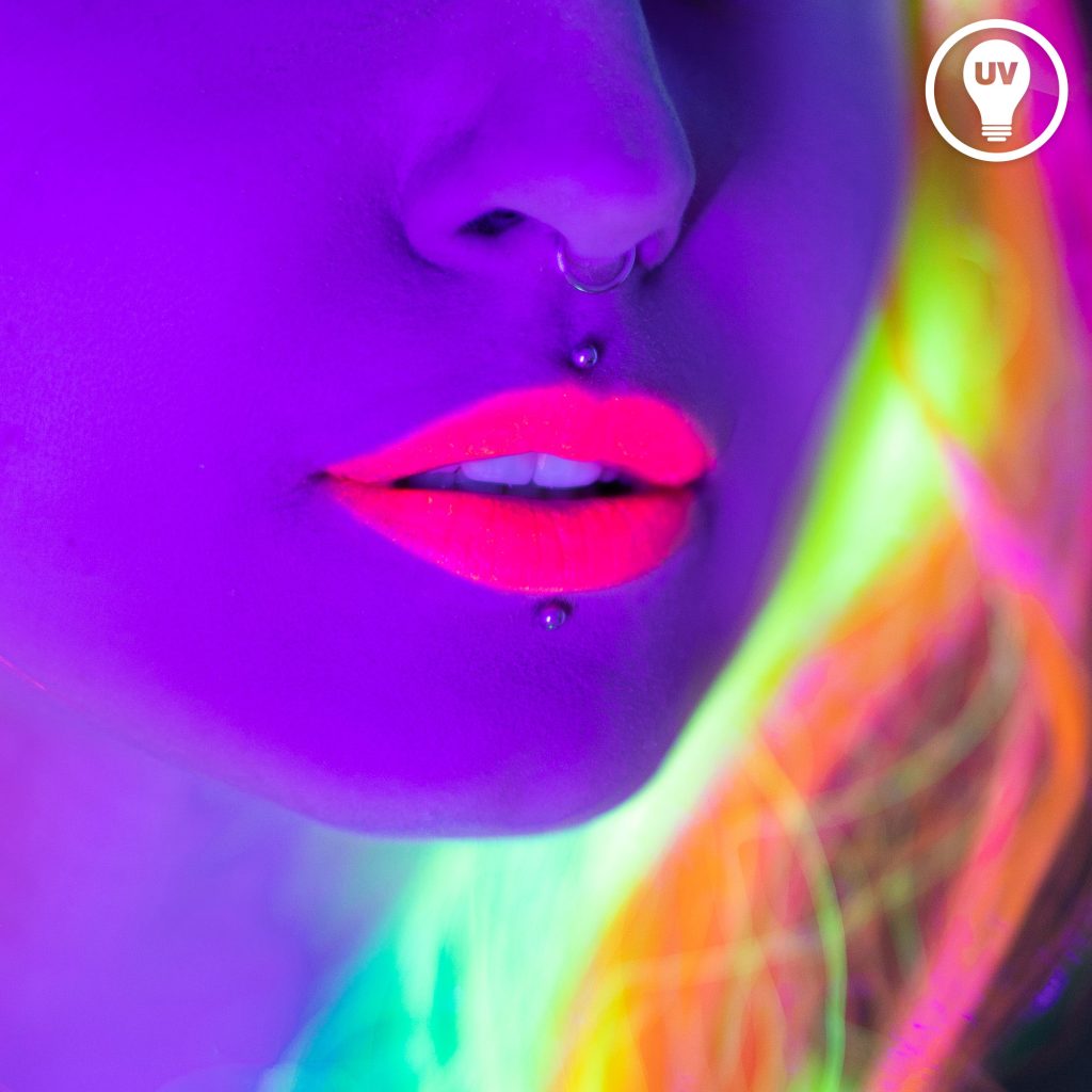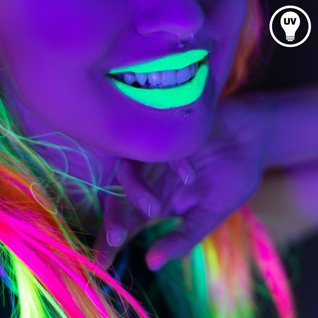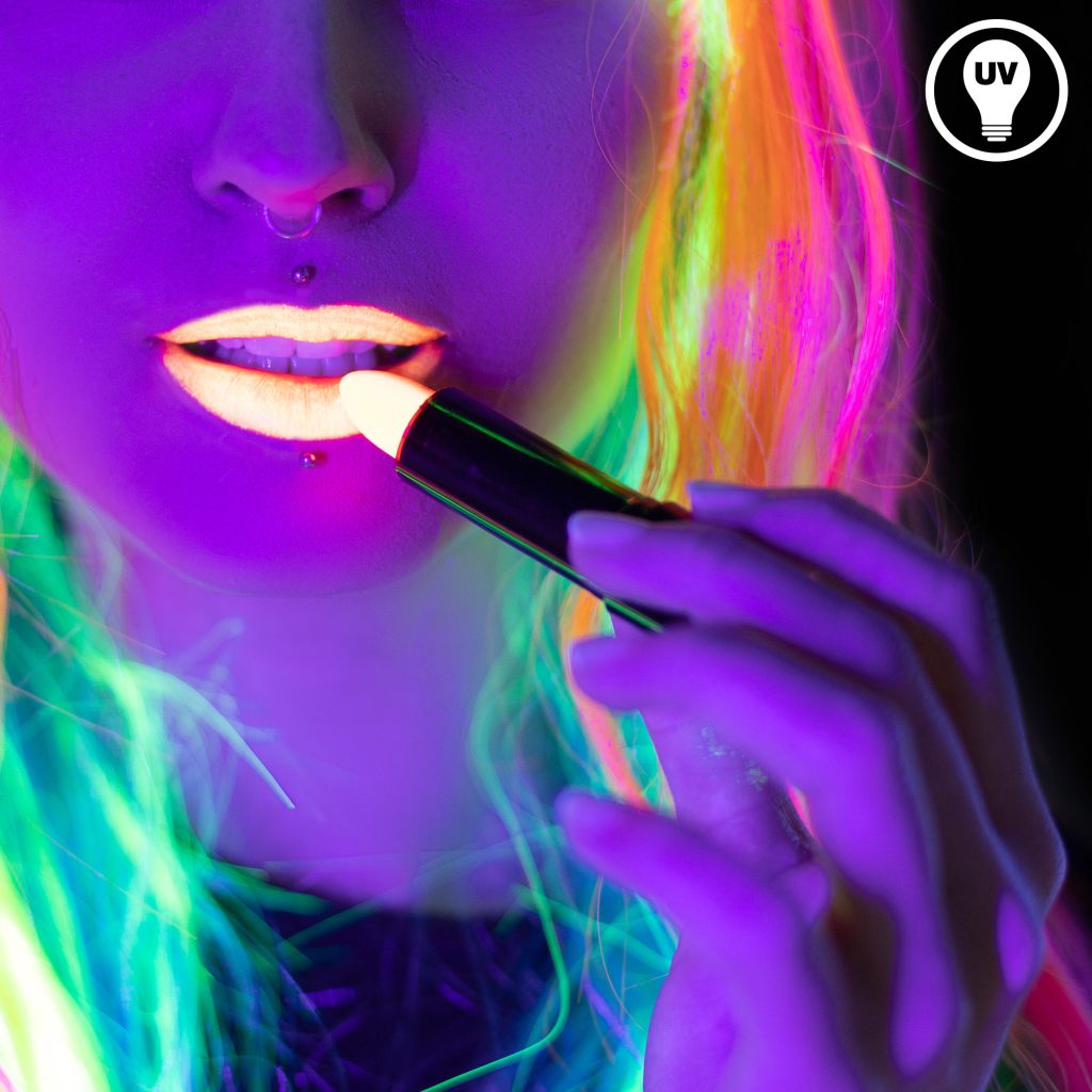 Alle Neon-Lippenstift-Fotos wurden von uns gemacht, um die Wirkung im Tageslicht und im Schwarzlicht möglichst realistisch darzustellen. Wir haben natürlich die hier angebotenen Lippenstifte verwendet, und verzichten auf eine starke Nachbearbeitung der Fotos. Der Schwarzlicht-Effekt hängt von der Stärke der UV Lampen im Partyraum ab, kräftiges Schwarzlicht ist notwendig um einen guten Leuchteffekt zu erzielen.