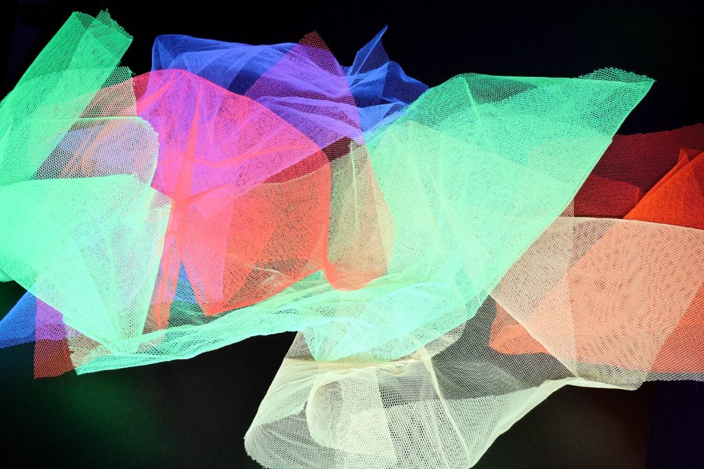 Onze neon-UV-tule komt uit Engeland en is geverfd met azovrije fluorescerende pigmenten. Verkrijgbaar in 6 neonkleuren – groen, geel, oranje, roze, rood en wit – als 6-kleurenset met 1 meter per kleur of als volledige rollen van 40 meter per kleur. Het materiaal is moeilijk ontvlambaar en ideaal voor kostuums, tafeldecoratie, podiumdecoratie en ruimte-aankleding.