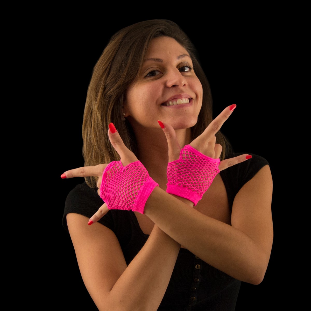 • 1 Paar kurze Neonpinke Netzhandschuhe
