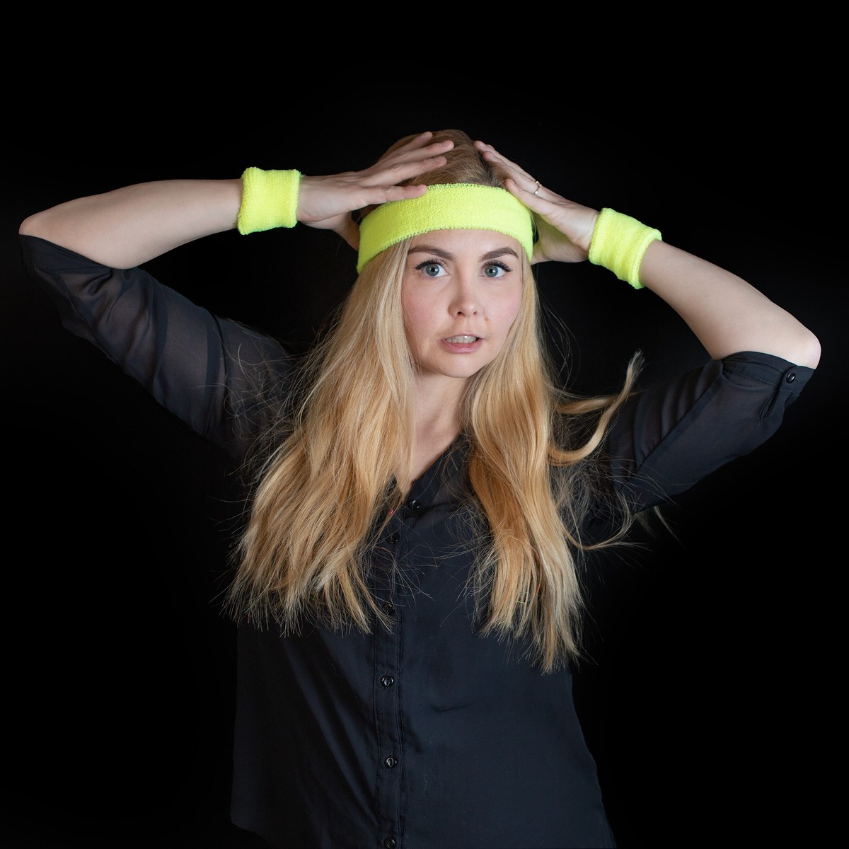 Der Clou für die nächste Neon-Party oder eine Schwarzlicht-Theater Aufführung: Die Schweißbänder leuchten hell im Schwarzlicht!