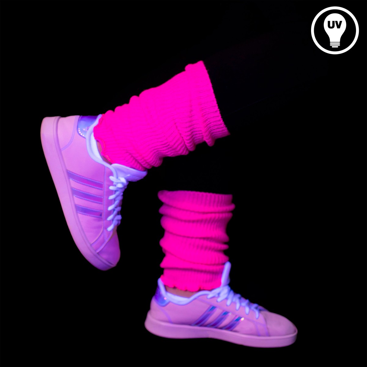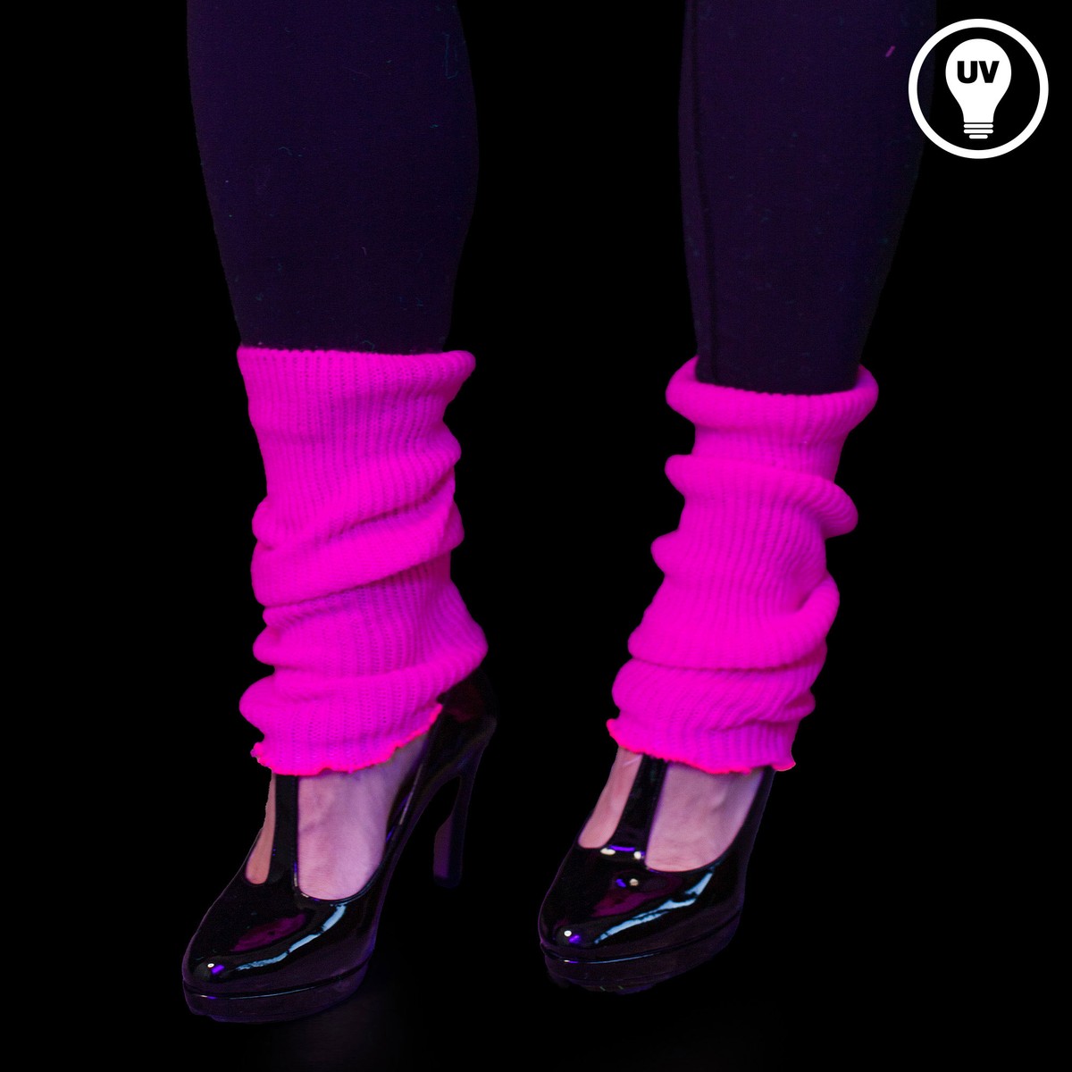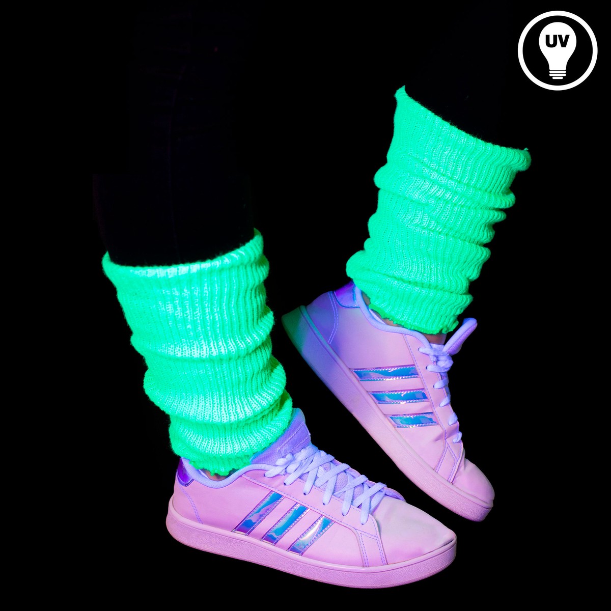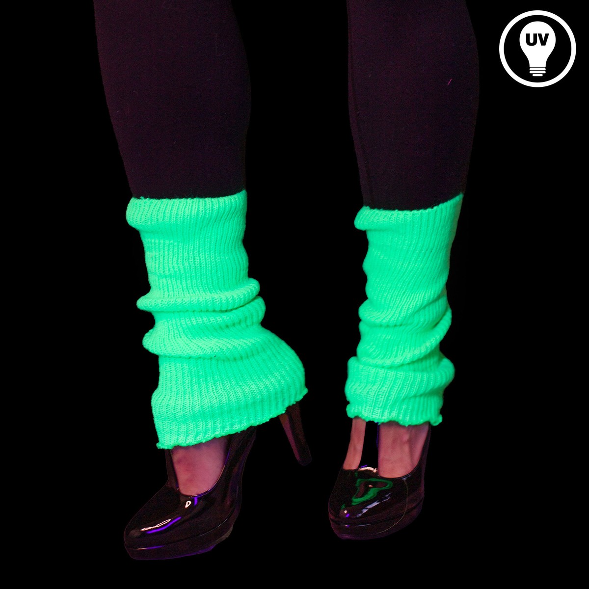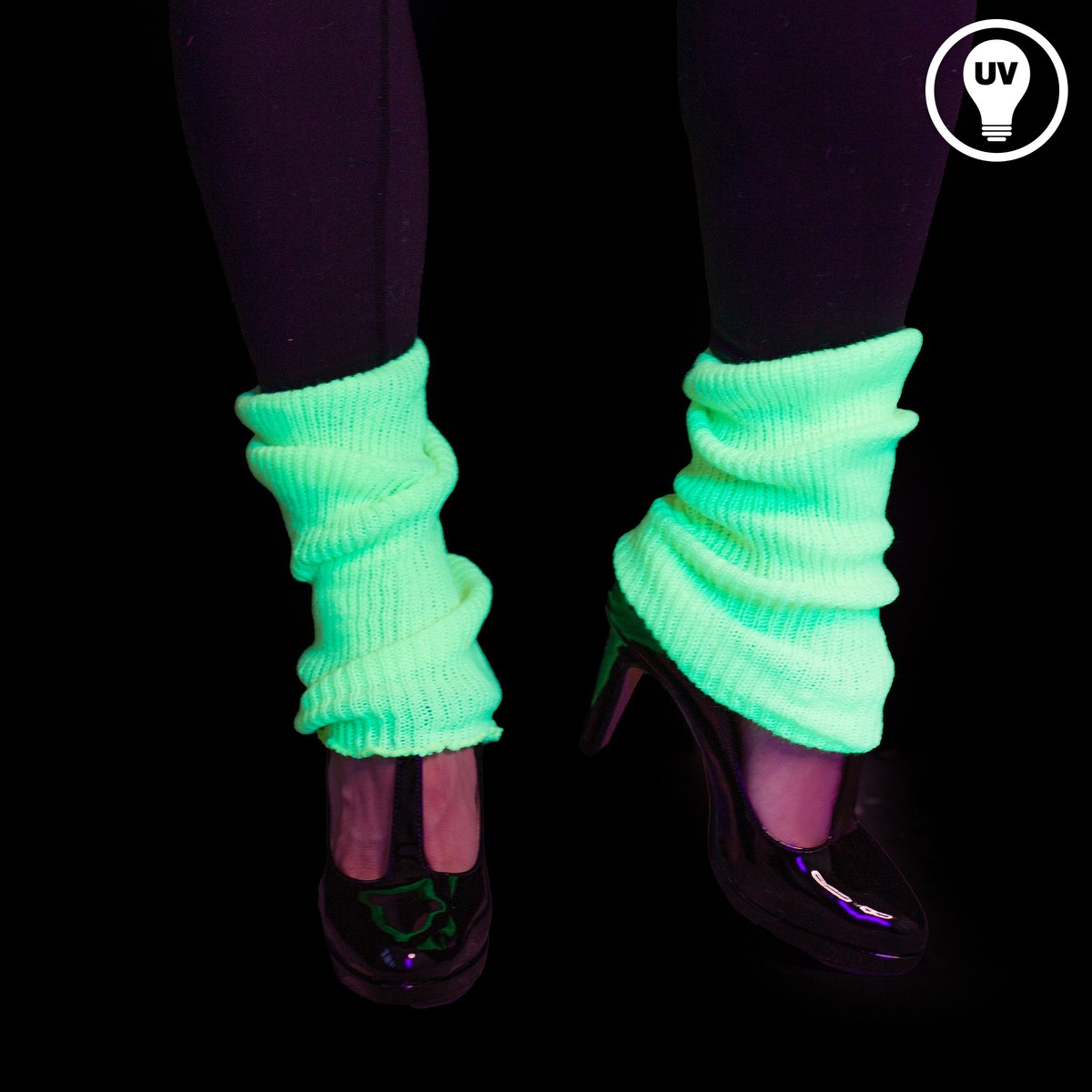 Diese Stulpen sind knallig neonfarben im Tageslicht und leuchten stark im UV-Licht / Schwarzlicht. Sie sind ideal für 80er Jahre Outfits, Neon-Partys, Fasching & Karneval und für Festivals.