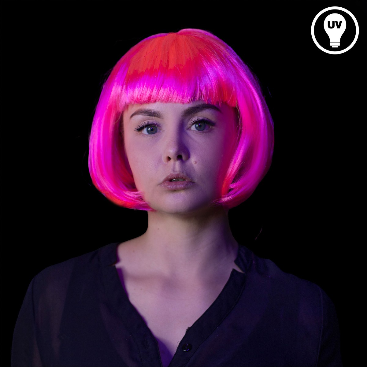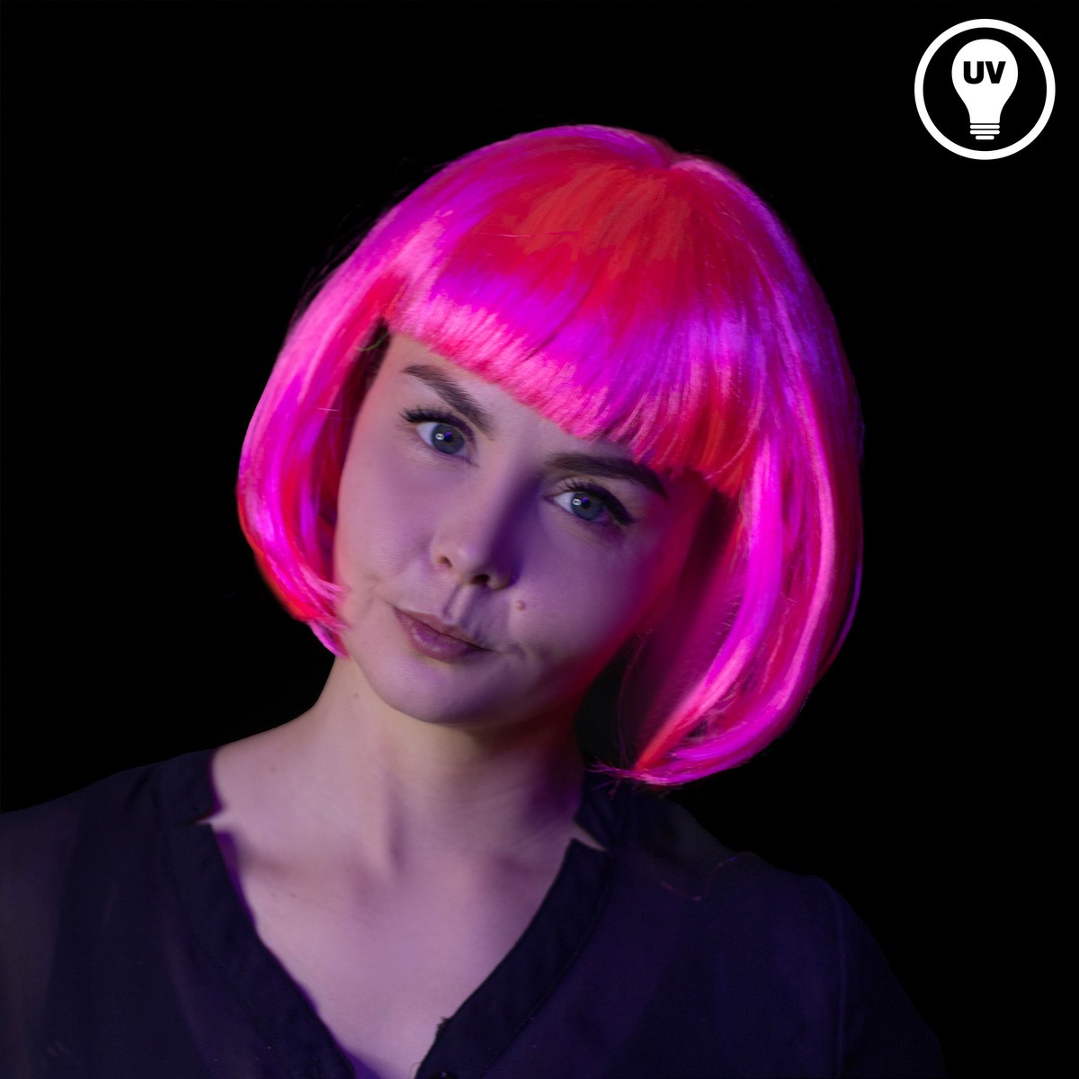 Die Perücke ist in Einheitsgröße erhältlich und eignet sich für Erwachsene. Sie besteht aus 100% Polyester und sieht ziemlich echt aus. Das leuchtende Neonpink wirkt bei Tageslicht schon auffällig, aber das Beste ist: Im Schwarzlicht (UV-Licht) strahlt die Perücke noch intensiver!