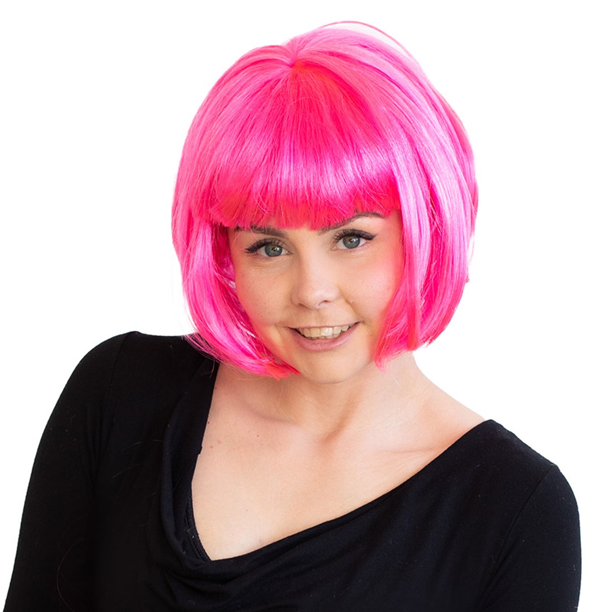 Lass dich von der Neonpinken Perücke begeistern und werde zum Blickfang auf jeder Party! Diese leuchtende Neon Perücke mit kurzem Bob Schnitt, ideal als Partyperücke oder modischer Hingucker, ist perfekt für Karneval, Mottopartys und Festivals.